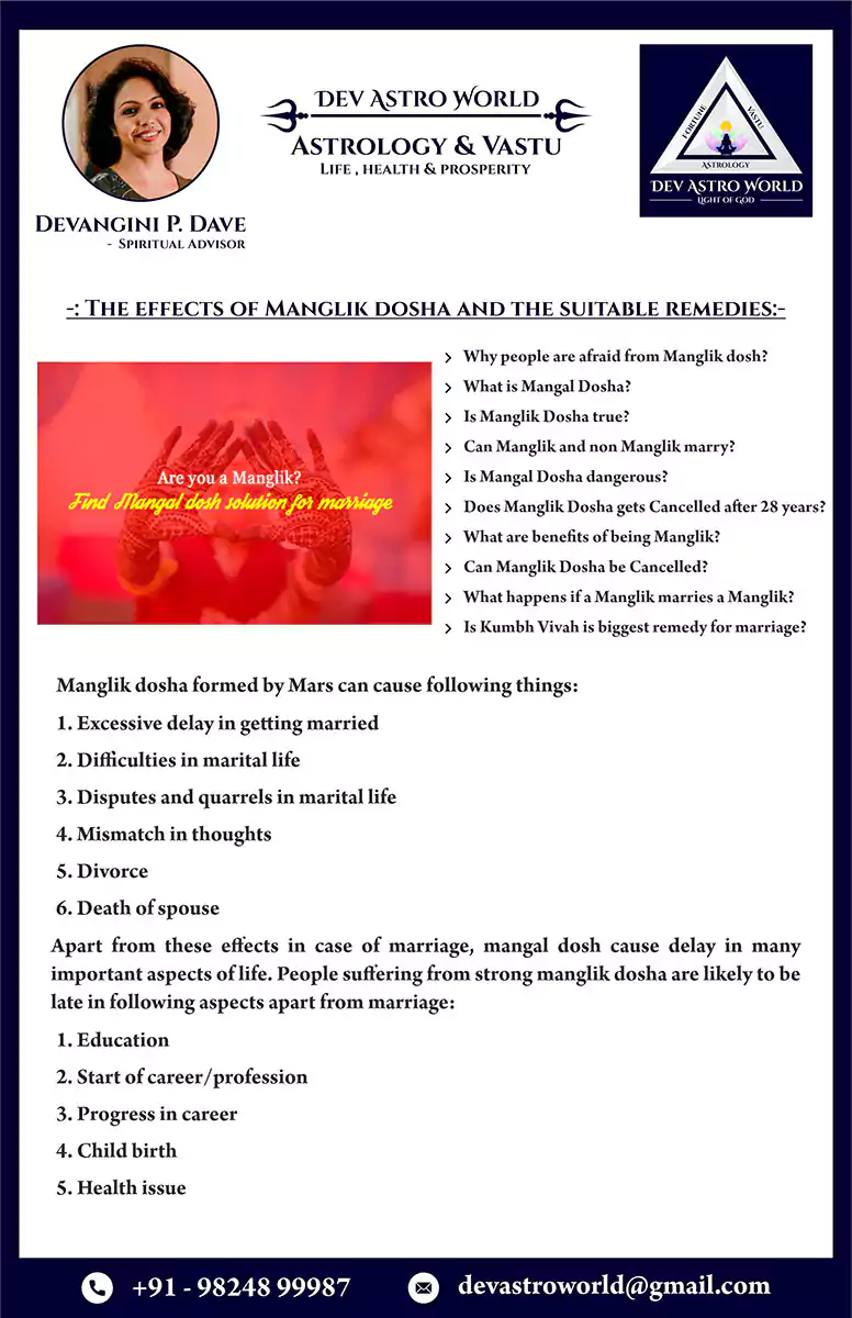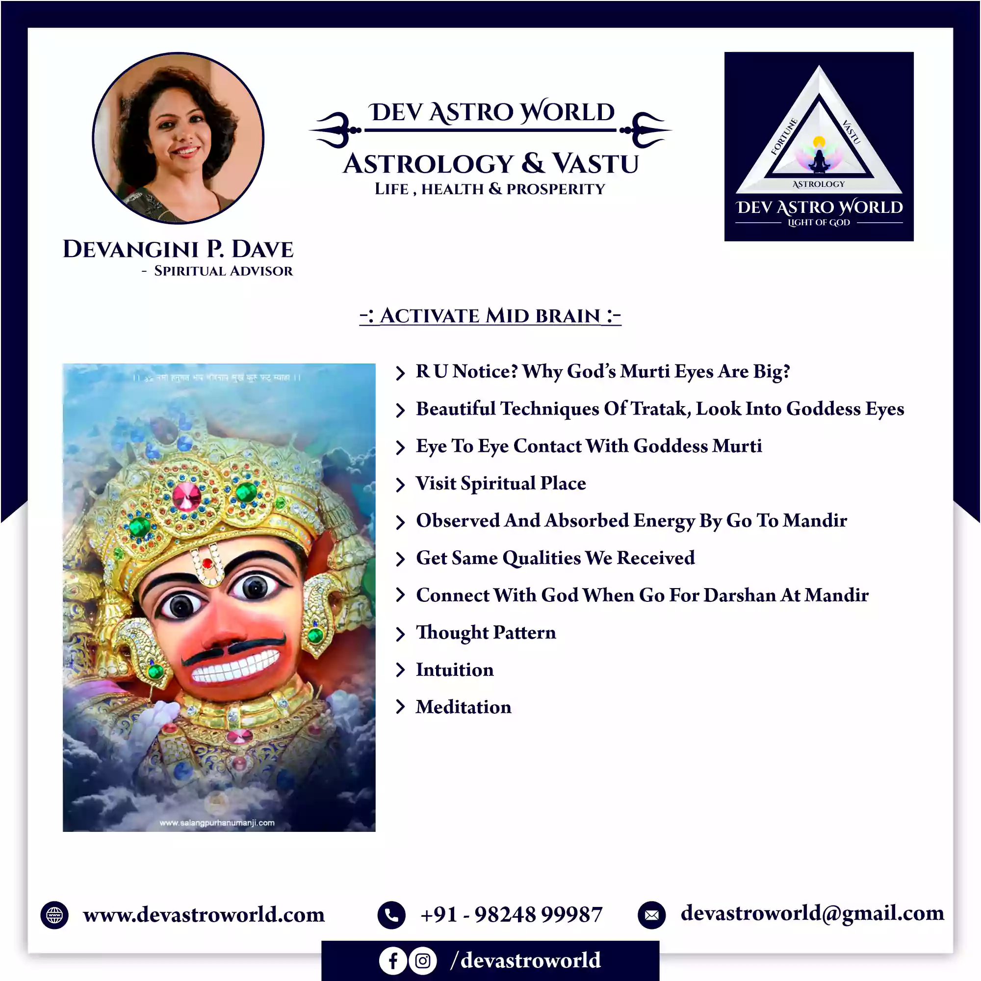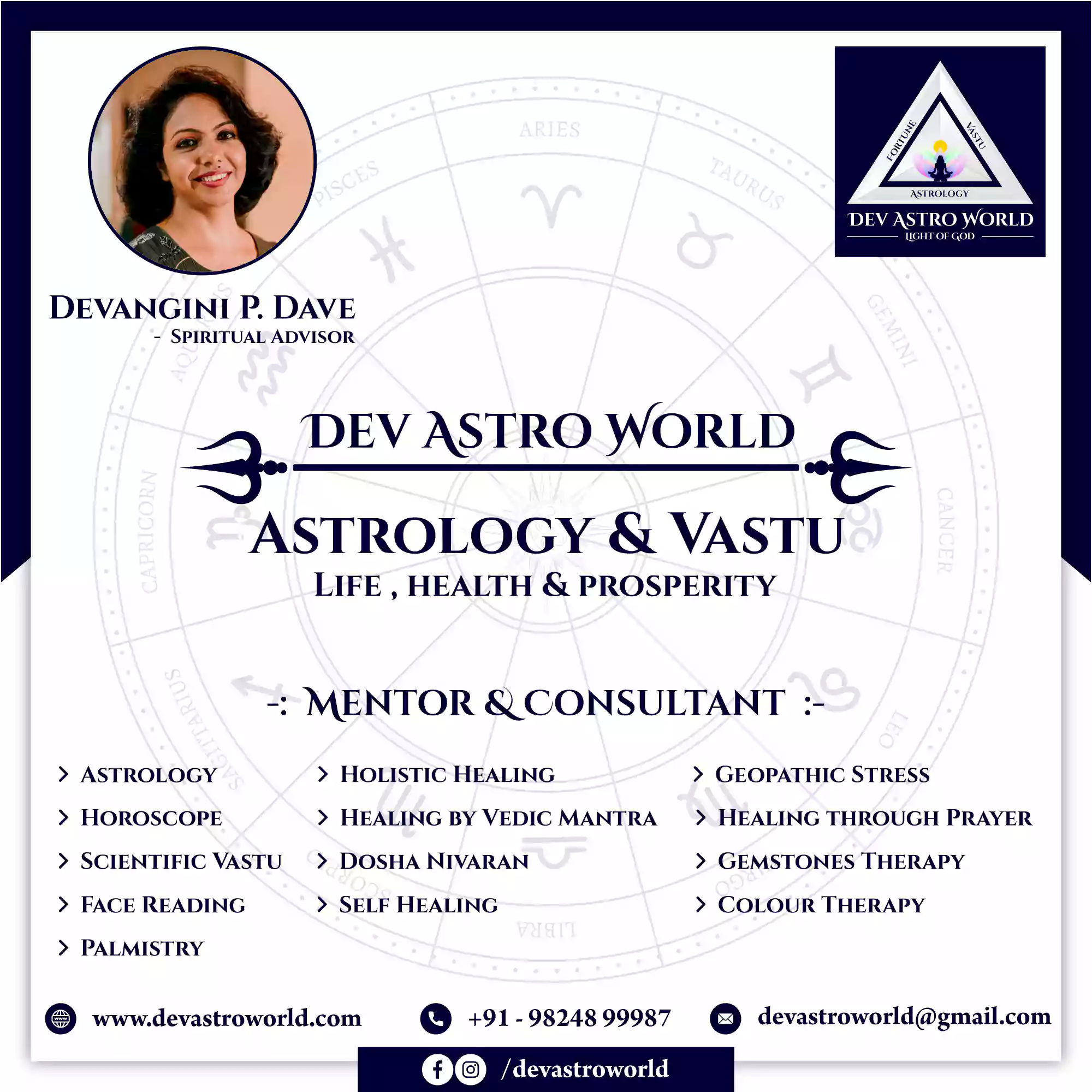 Dev Astro World is a successor of Dr. Devangini Dave’s other endeavors about her practice and consultation on Indian Vedic Astrology and other areas. Associated with this field for almost two decades, Dr. Devangini Dave brought positive changes to around 500 businesses and countless individuals. After giving counsel to thousands of clients spread across the length and breadth of India, and in response to a growing need among people to learn about the para scientific disciplines, Dev Astro World was born.